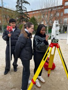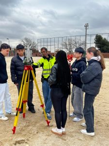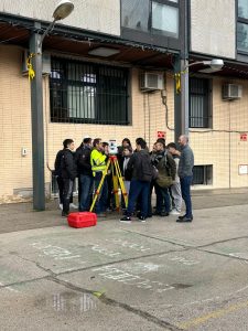 Práctica de campo: Realizamos mediciones reales con estación total, llevando la tecnología que usamos en nuestros proyectos a las manos del alumnado con Alberto Fernández-Mellado (jefe de proyectos).